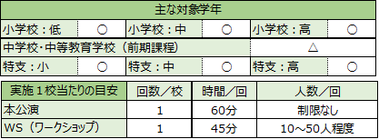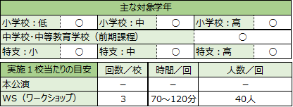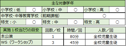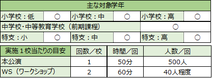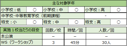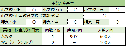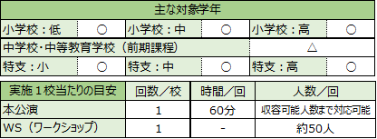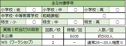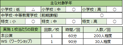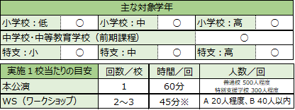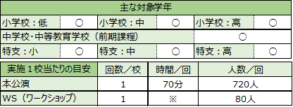 ![]() ※本公演と別日開催の場合は2時限、同日開催の場合は1時限で対応 |